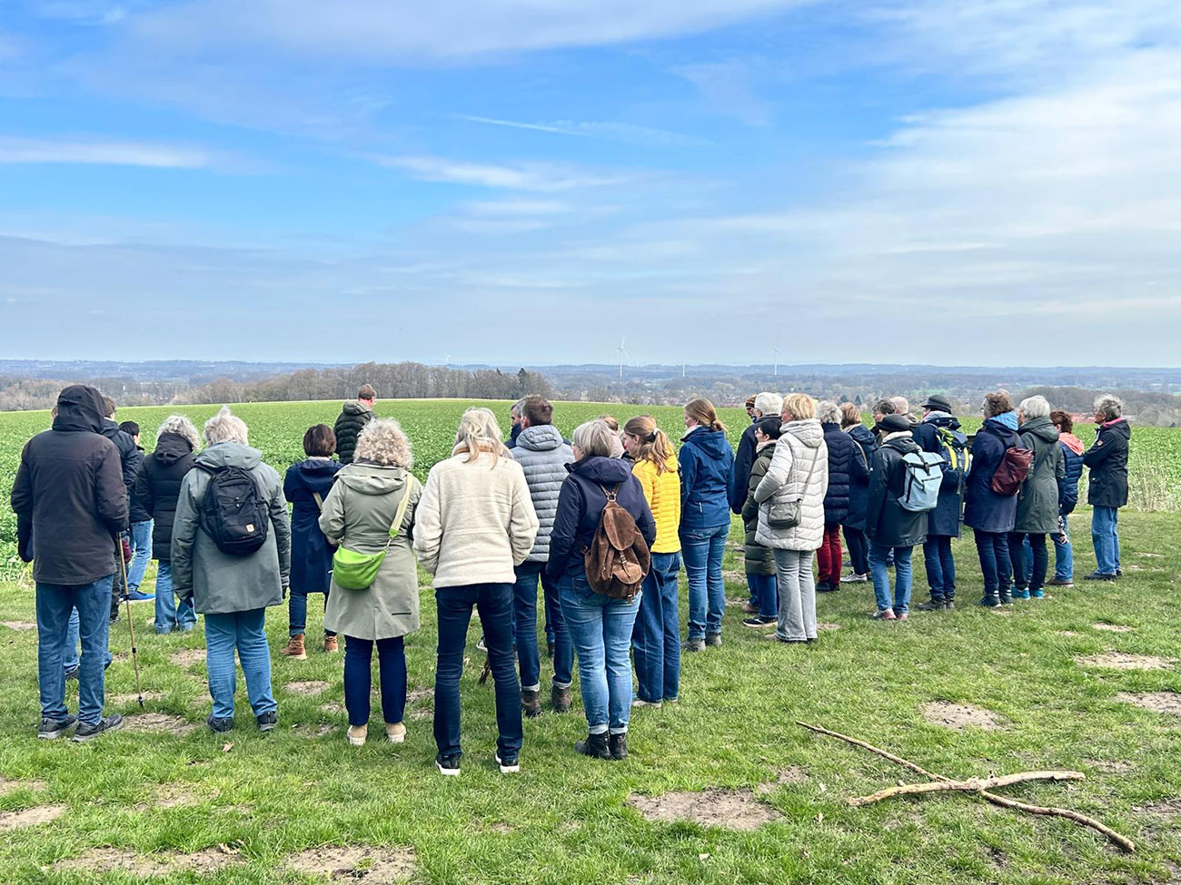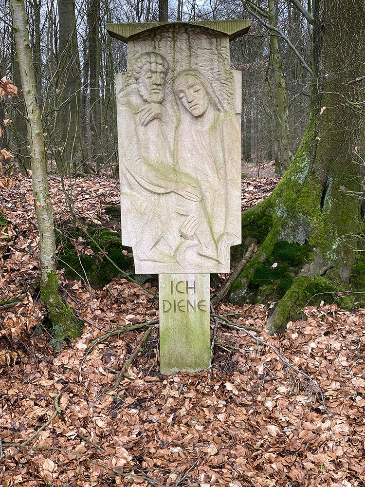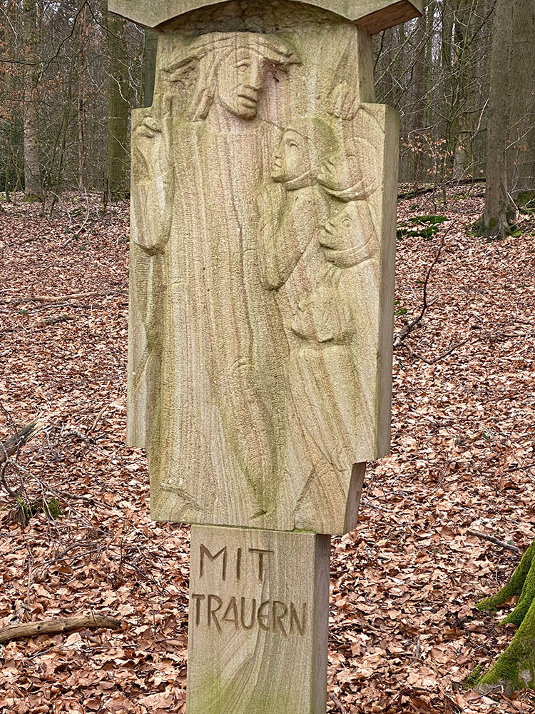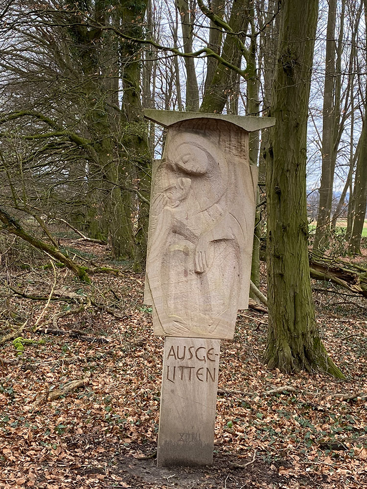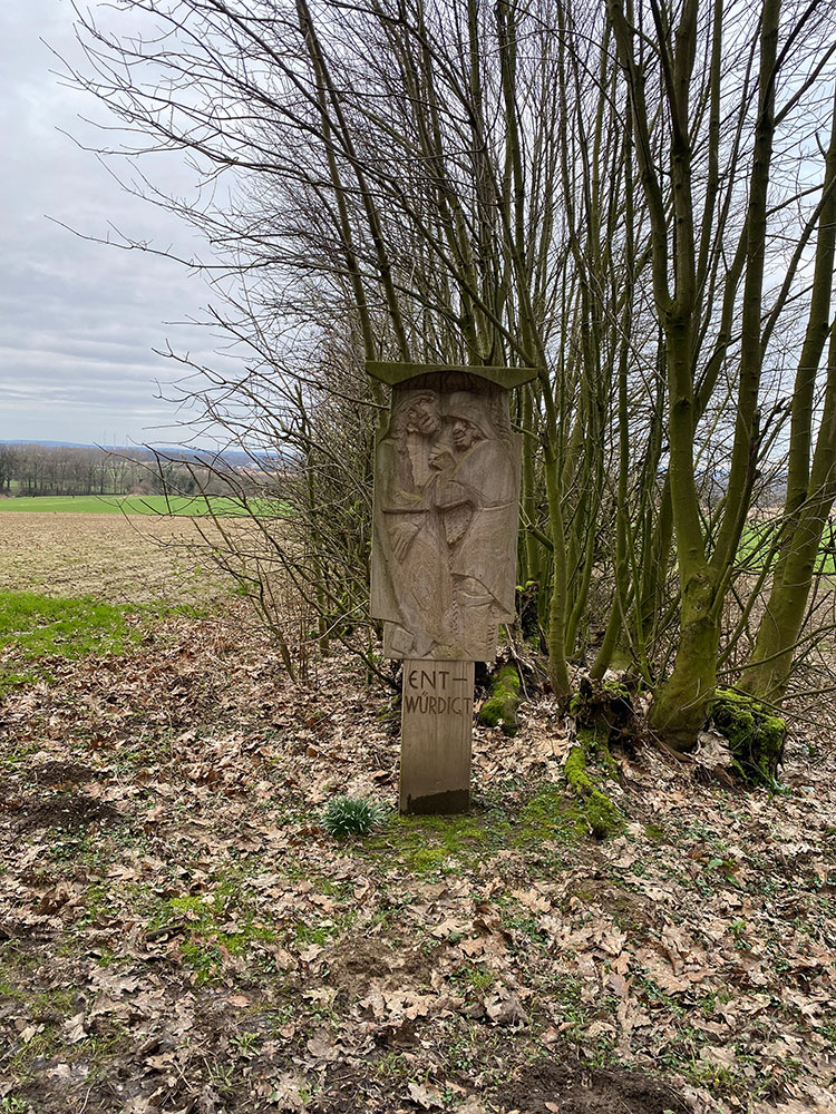 am Karfreitag lade ich jedes Jahr zum Kreuzweg in den Baumbergen ein. Der Weg erstreckt sich ungefähr auf einen Kilometer, ich gebe an jeder Station einen Impuls, der den Kreuzweg Jesu in unsere heutige Zeit übersetzt, so dass sich die Menschen mit ihren Fragen, Sorgen, Nöten und ihrem Leid wiederfinden können.